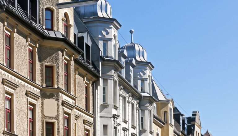 Die Architektur des Historismus zeichnet sich durch eine symmetrische, repräsentative Bauweise aus, die den gesellschaftlichen Aufstieg des Bürgertums sichtbar machen sollte. Typisch waren großzügige Grundrisse, hohe Decken und die sogenannte Blockrandbebauung, bei der durch geschlossene Bauweise Innenhöfe sowie klare Straßenräume entstanden. Auch die Farbgebung spielte eine wichtige Rolle: Dezente Töne wie Grau, Beige oder Gelb sollten auf die Verwendung hochwertiger Materialien hinweisen. Besonders prägend für den Historismus sind jedoch die reich verzierten Fassaden mit Stuck, Giebeln und Säulen, die vor allem einen dekorativen Zweck erfüllten. Diese Bauweise prägt bis heute das Bild vieler deutscher Städte – etwa in Berlin, wo ganze Stadtteile wie Prenzlauer Berg oder Friedrichshain durch historische Blockrandbebauung geprägt sind.